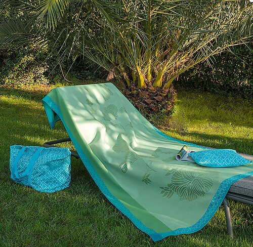 Bring the beach to life with the Le Jacquard Français Monoi Blue Beach Towel, a luxurious blend of tropical beauty and refined French design. Made in France from 100% pre-washed cotton, this towel combines smooth softness with eye-catching sophistication. Its vibrant blue and green floral pattern captures the calming spirit of island living while adding a bold splash of color to your summer essentials. Whether you're lounging poolside or soaking up sunshine on white-sand beaches, this towel delivers more than comfort-it brings a full vacation vibe wherever it goes. Special order, usually ships in 3-4 weeks.