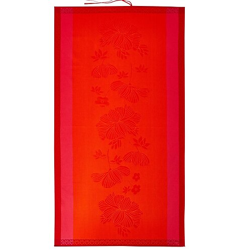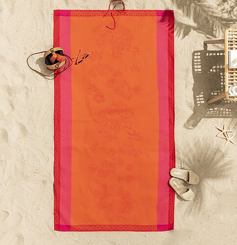 Say hello to your new summer essential. This floral beach towel turns heads with its artful mix of biomorphic shapes and warm, saturated tones. The red and pink color palette is bold without being loud-perfect for those who want their beach accessories to reflect personality and poise. The Monoi design captures the essence of tropical flowers in full bloom, blending organic curves with a high-fashion twist. It's a beach towel that looks just as stunning laid out on the sand as it does slung over your shoulder.