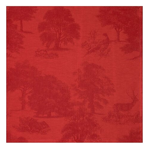 Step into an enchanted woodland where elegance meets storytelling. The Souveraine Red Collection from Le Jacquard Français transforms your dining experience into a luxurious journey through a magical forest. Crafted from 100% linen and woven in France, each piece features a rich toile de Jouy-style scene-a delicate panorama of pheasants, wild boars, fawns, and hares nestled among lush, intricate foliage. The deep red hue evokes royalty and warmth, wrapping your table in a sense of wonder and refined rustic charm. Special order, usually ships in 3-4 weeks.