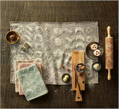 Blending 50% linen and 50% cotton, this half-linen towel delivers on both form and function. Woven in Austria, it features thicker cotton and classic linen yarns that provide exceptional absorbency and durability-perfect for heavy-duty drying, polishing, and prep work during the holiday baking season and beyond. The detailed jacquard pattern is loom-fitted, ensuring each element is crisp and clear across the 20x28" towel-just like your favorite sugar cookies on a platter.
