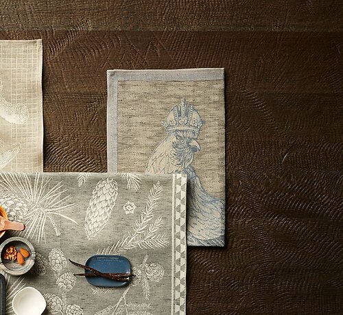 In every thread of the Leitner Emperor Kitchen Towels, there is a story of luxury, heritage, and design excellence. Crafted from 100% linen, these towels are not only a nod to the noble lineage of heraldic symbols but also a testament to the timeless elegance of linen. The detailed jacquard weave showcases the intricacies of the royal rooster design, making each towel a piece of art. Available in a palette of noble colors, from the deep hues of Oriental Bronze to the serene shades of Blue Fog, these towels offer a perfect blend of functionality and aesthetic appeal. Whether it's the soft touch of linen on your hands or the distinguished design that catches your eye, the Emperor Rooster Towels are a celebration of the finer things in life, making every day in the kitchen feel like a coronation.