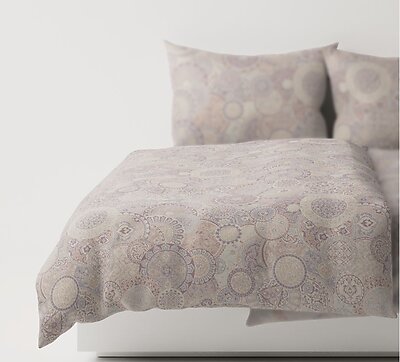 With its beautiful jacquard pattern, the Isabella collection (also known as Intarsio) brings natural charm to the bedroom or table, while the pure linen also ensures pleasant sleeping conditions. Leitner's Isabella is 100% Linen.
