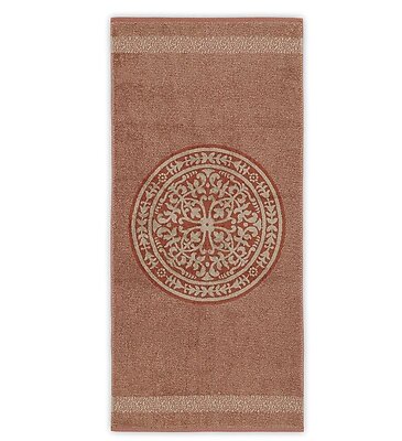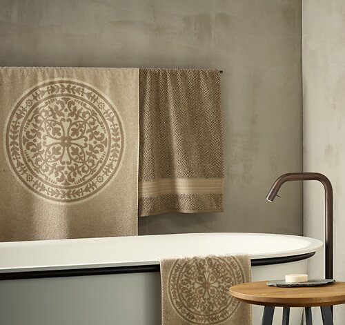 Leitner's Medici range of towels delights with its historical Renaissance pattern. The special quality terry fabric product is made from a blend of linen and cotton and is available in a variety of sizes, from face cloth to bath towel. 80% Cotton, 20% Linen. Sold in indicated sets only. Also known as Rosetta pattern.