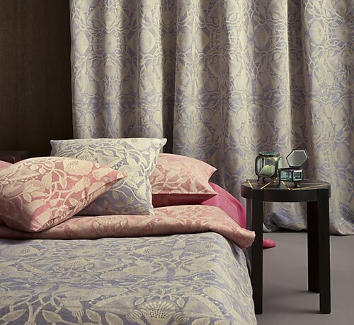 Leitner Nouveau (Arcadia) is available as Duvet Covers, Shower Curtains, Flat Sheets, Pillowcases, Bed Shams, Coverlets, Blankets, Bed Skirts, Napkins, Placemats, Tablecloths and Decorative Pillows in Rostrot red, Sakura pink, Delft blue, Stone grey, Zyklame green Leinen tan, Terra brown, Anthrazit dark grey, Blue Fog, White, Arctic blue, Jade green.