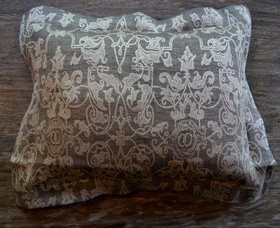 This Leitner Petite Camelot boudoir sham fits standard boudoir pillow inserts of 12x16" (not included). Overall size approximately 15.5 x 20". Used on a display bed, this sham is in excellent condition.
