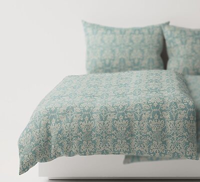 Leitner Petite Camelot is available as Duvet Covers, Shower Curtains, Flat Sheets, Pillowcases, Bed Shams, Coverlets, Blankets, Bed Skirts, Napkins, Placemats, Tablecloths and Decorative Pillows in Rostrot red, Lago blue, Delft blue, Tanne green, Leinen tan, Terra brown, Anthrazit dark grey, Stone grey, Blue Fog, White, Sakura pink, Marigold, Arctic blue, Jade green.
