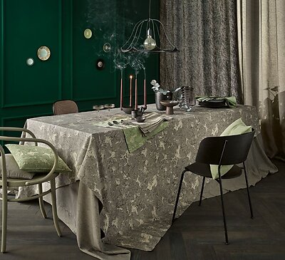 Leitner's Regent (also known as Hirsch) is 50% Linen & 50% Cotton and features graphic illustrations from the forest realm.