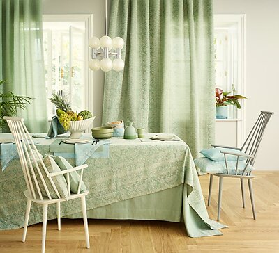 Leitner's Teresa (also known as Vintage) is 50% Linen & 50% Cotton and features a blend of stripes with intricate scrolling floral pattern.