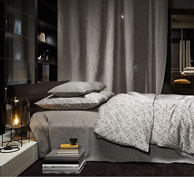 Leitner Valdera (Aquarell) is available as Duvet Covers, Shower Curtains, Bed Shams, Coverlets, Blankets, Bed Skirts, Napkins, Placemats, Tablecloths and Decorative Pillows in Rostrot red, Sakura pink, Stone grey, Albaster tan, Granit grey, Anthrazit dark grey, Blue Fog, White, Arctic blue, Jade green.