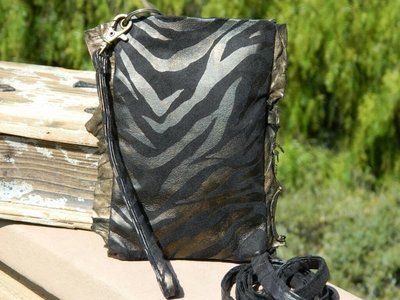 BLACK & BRASS ZEBRA MICROSUEDE bag Lisa & Lori by Lisa Berck Trimmed in antique gold bronze Borello lambskin this black and brass imported microsuede is so luxurious. Perfect with your little black dress when out on the town and great with shorts and flip flops anytime!