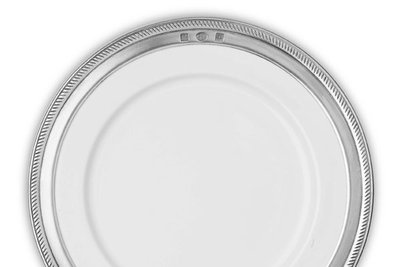 This white ceramic and pewter salad or dessert plate is part of Match Pewters Luisa collection. Hand made in Italy. Special order, usually ships in 4-6 weeks.