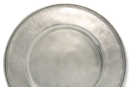 Match Pewter's Toscana chargers create an elegant presentation at the table. Handmade in northern