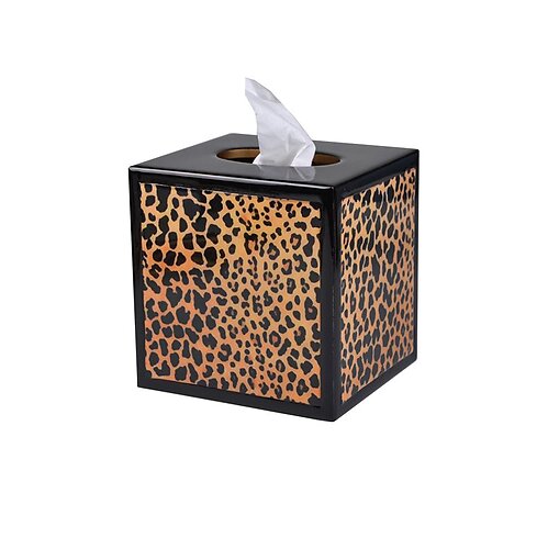 Crafted for those who love the spotlight, these animal print bathroom accessories are as practical as they are powerful. Made with high-quality enamel and detailed by hand, every item in the Congo Collection offers durability, elegance, and designer appeal. Whether it's the boutique tissue box, soap dish, or pump dispenser, you'll find your daily essentials beautifully elevated-proving utility can be glamorous too.