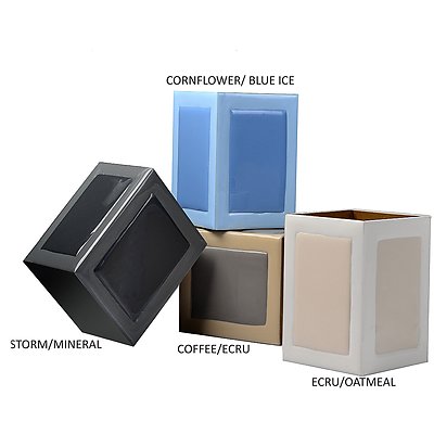 Mike and Ally Core collection bath accessories feature a hand applied two tone blocked effect design that will fit into a variety of decors.