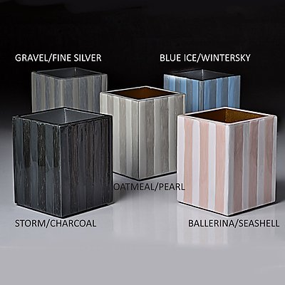 Mike and Ally Havana collection bath accessories feature a hand applied striped tone on tone design that will fit into a variety of decors.