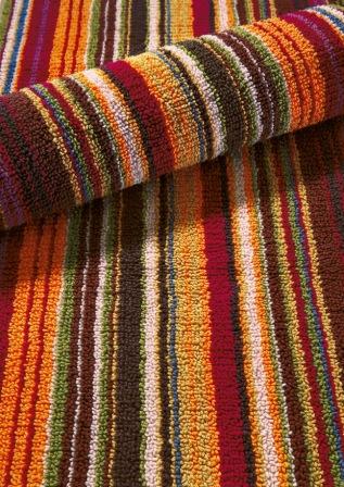Liven up your bathroom with this boldly striped bath rug or mats. Missoni has created another wonderful bath rug that will look great in a variety of places. Soft cotton strands on one side reversing to a looped texture on the other. Machine washable 100% cotton. Coordinates to Missoni Jazz towels. These Missoni bath rugs are thick 100% Cotton. Available in 24x35"