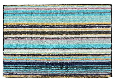 Liven up your bathroom with this boldly striped bath mats. Missoni has created another wonderful bath rug that will look great in a variety of places. Soft cotton strands on one side reversing to a looped texture on the other. Machine washable 100% cotton. Coordinates to Missoni Jazz towels. These missoni bath rugs are thick 100% Cotton. Available in 24x35"