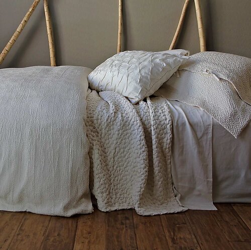Experience the effortless elegance of SDH The Purists Petalo-a bedding collection that blends 80% organic cotton and 20% silk into a lightweight, breathable jacquard boutis fabric. The beauty of this collection lies in its pure, undyed natural fibers, giving it an earthy tone that complements any space. From duvet covers to decorative pillows, Petalo offers a softness that feels indulgent yet grounded-perfect for those who seek serenity in design and touch.