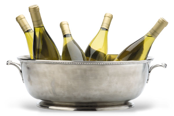 This beautiful beaded pewter basin is useful for many things, including a wine cooler, planter, towel holder, etc. Features a stable footed base and carry handles. Hand made in Italy.
