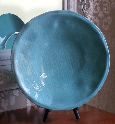 This beautiful ceramic platter features a linen weave pattern in beautiful and bold turquoise that is sure to brighten your home. This platter is hand made in Italy by Pimpinelli Ceramiche with three generations of experience in pottery manufacturing and production. The image shown is representative of the pattern, each piece will have variations due to to the hand made nature.