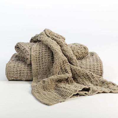 Anichini Adras waffle linen towels are woven from 100% stonewashed linen in a deconstructed patchwork waffle weave. These towels would look amazing in a rustic or cabin setting, as well as standing out in any bath by adding texture and style.