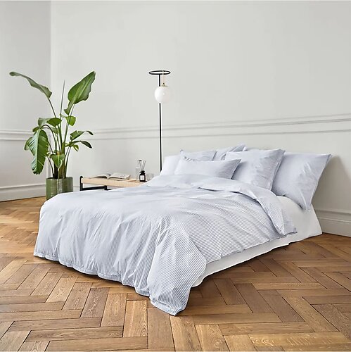 Experience Poplin Perfection: Indulge in the luxurious feel of poplin cotton with Schlossberg Bari Bleu duvet cover. Poplin is a fabric renowned for its finely ribbed texture, created by weaving finer warp threads than weft threads. This densely woven textile holds its form while remaining lightweight and elegant, offering a sporty, matte appearance that feels smooth and silky to the touch. Crafted from 100% pure, combed cotton, Bari Bleu ensures both style and comfort in your bedroom sanctuary.