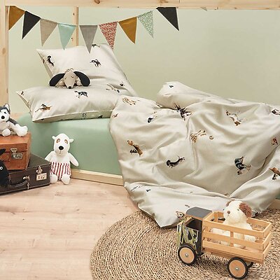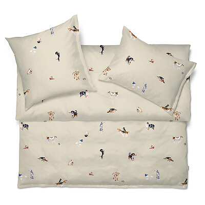 The metaphorical design BELLO portrays the most popular dog breeds in rich and loving detail on a beige and white dotted background - from clumsy and cheeky to trusting. Not only do the faithful companions join you on your daily walk, but also accompany you as you dive into the realm of dreams. This design features dachshunds, pugs, golden retrievers and many more spread out over the bedding, wagging their tails happily and fetching sticksnot only ensures that man's best friend accompanies you in everyday life, but is also by your side on your trips to dreamland. Various dog breeds and lovingly drawn canine characters greet you, tails wagging joyfully and invariably ready for the next adventure. Invite the motley pack of dogs into your home to guard your sleep and ensure an ultra-charming start to the day.