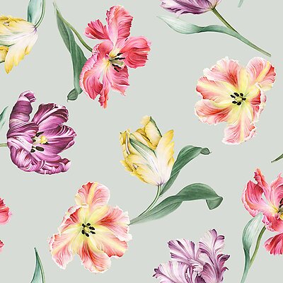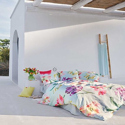 Schlossberg's Chloe Vert features gorgeous tulips spread their blooming petals and nod their heads elegantly, welcoming the spring. A sea of deep red, warm violet and sunny yellow, the noble flower splendor nestles against delicate, spring-like water green. Richly detailed and drawn in watercolor, the strong tulip flowers create a convincing effect of depth. The classic Schlossberg bed linen design CHLOE is combined with the generous arrangement of the tulips for a modern touch, and puts you in the mood for spring.