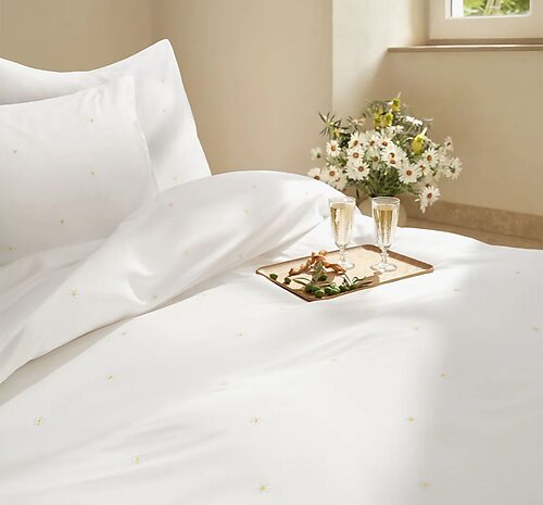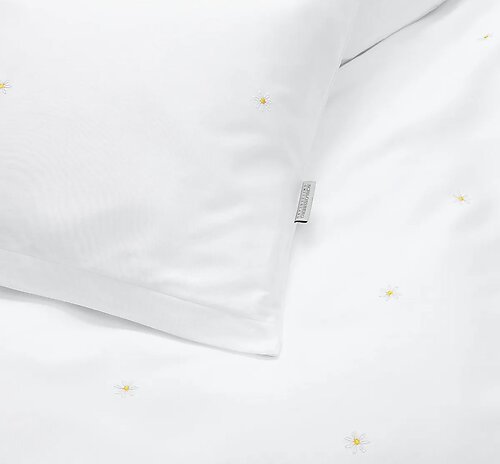 Imagine the feeling of running through a sunlit garden meadow, weaving delicate flower crowns as the warm summer breeze whispers through the air. The Schlossberg Daisy Bedding Collection brings this joyful nostalgia to life with its exquisite embroidered daisies, gracefully scattered across pure white cotton sateen. Each bloom is uniquely detailed, creating an elegant yet playful look that transforms your bed into a field of eternal summer bliss. Whether you're seeking romantic charm or a touch of natural serenity, this bedding collection is designed to enchant and inspire. Designed in Switzerland, made in EU. Special order, usually ships in 6-8 weeks. Not eligible for return, exchange or cancellation.