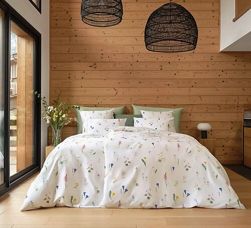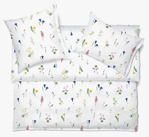 Step into a serene alpine escape with the Schlossberg Flurina Collection, where delicate wildflowers and lush greenery create a dreamlike haven of comfort and elegance. Inspired by botanical illustrations and blooming mountain meadows, this luxurious bedding set brings a touch of nature's purity and nostalgia to your bedroom. Gentle tones of gentian blue, sunny yellow, and violet rose dance across a crisp backdrop, evoking the freshness of an untouched landscape. Whether you're drawn to the romance of vintage florals or the simplicity of nature, Florina transforms your sleep space into a poetic retreat. Special order, usually ships in 6-8 weeks. Not eligible for return, exchange or cancellation.