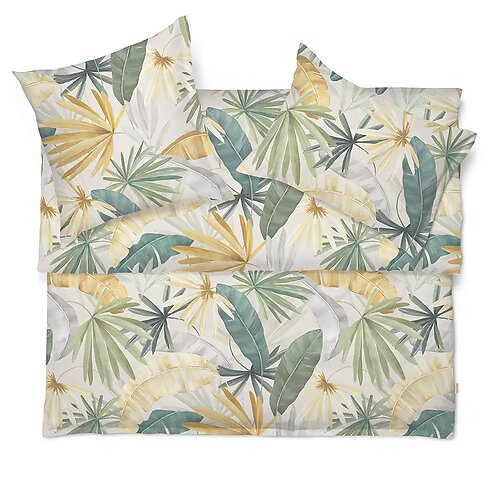 Discover Botanical Bliss: Take a journey through lush botanical gardens with Schlossberg Palma Beige jersey knit bedding. As you sink into the softness of this exquisite bedding ensemble, allow yourself to be transported to a tranquil oasis where the worries of the world melt away. The tropical pattern of palm leaves evokes a sense of serenity and relaxation, inviting you to unwind and escape the hustle and bustle of everyday life. Made to order, usually ships in 6-8 weeks. Not eligible for return, exchange or cancellation.