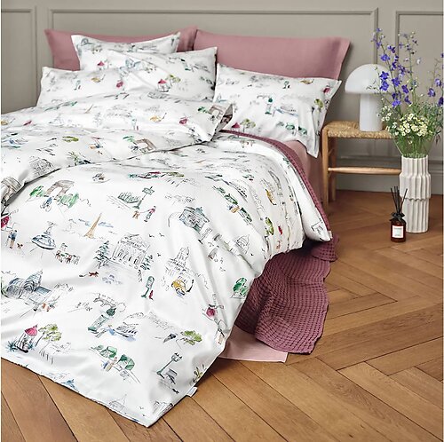 Evoke Memories of Past Adventures: Transport yourself back to the cobblestone streets and charming cafes of Paris with Schlossberg Paris Mon Amour cotton duvet covers. The illustrative Paris print pattern brings the city's landmarks and iconic symbols to life, evoking feelings of nostalgia and wanderlust. Whether you've visited Paris before or dream of exploring its streets one day, this bedding ensemble is sure to ignite your imagination and stir your soul.