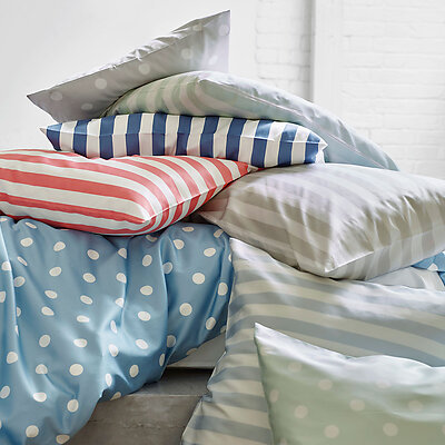 Schlossberg's Ritz Marine features block stripes in white and marine blue on organic cotton. A timeless, elegant design for your home.