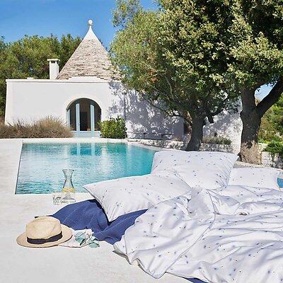 - Duvet covers have a zipper closure as Schlossberg believes they look better that way, however button closures are available at additional cost