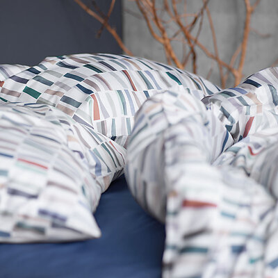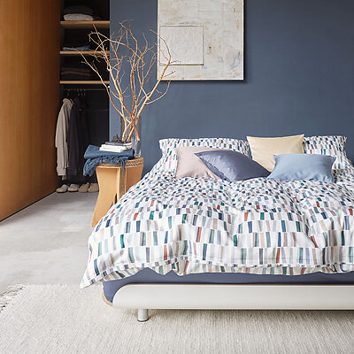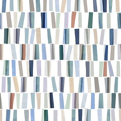 Schlossberg's Vito Blanc features bold blues and greens with more subdued greys and beiges and rusty red.