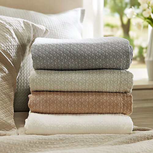 The lightweight jacquard fabric is rich in texture without feeling heavy, offering the perfect layer for year-round use. From duvet covers and coverlets to throw blankets, shams, and decorative pillows, with many pieces designed with fabric tie closures for a refined, artisan touch. The diamond pattern adds depth and movement without overpowering, making Alassio a beautiful match for both traditional and contemporary interiors. Its versatile colorways bring a curated, cohesive feel to your bedding ensemble.