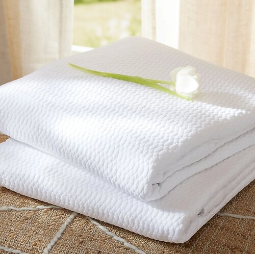 Corfu's textured jacquard pattern adds depth and dimension to your bed without overpowering it. The pristine white hue enhances its versatility, while the craftsmanship of yarn-dyed cotton ensures both visual and physical softness. Every detail-from the graceful drape of the fabric to the fabric tie closures on the duvet covers, coverlets, throw blankets, shams, and decorative pillows-speaks to a dedication to quiet luxury. It's breathable, lightweight, and designed to envelop you in cloud-like comfort.