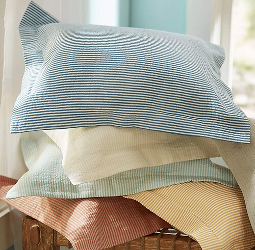 Bring a breeze of relaxed sophistication into your bedroom with SDH Elba. Crafted from a luxurious blend of 60% Egyptian cotton and 40% linen, this fabric breathes with you, offering an ultra-comfortable feel that's ideal for warm climates and coastal living. The subtle yarn-dyed micro stripe pattern and naturally textured seer-suckered finish add dimension and character, delivering an effortlessly laid-back elegance. Whether you're outfitting a beach house or simply chasing that island vibe, Elba offers breathable comfort without compromising style. While sheets and pillowcases are available, we recommend looking at other sheeting options due to the texture.