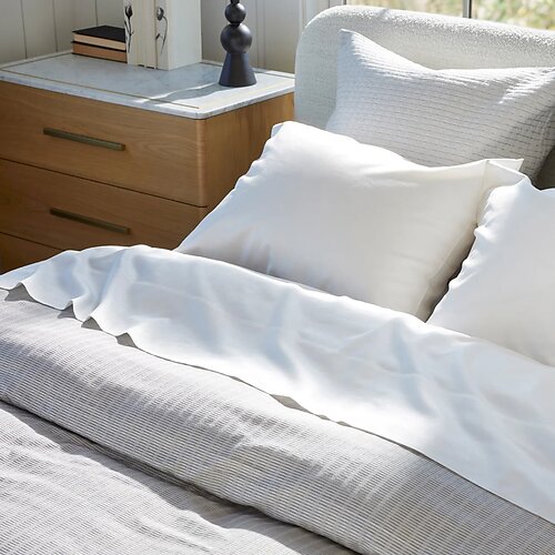 Crafted from a balanced blend of 50% silk and 50% Egyptian cotton, this bedding invites you to experience the best of both worlds-silk's natural sheen and cotton's breathable softness. Whether you're sinking into a duvet cover, slipping into buttery-soft sheets, or layering with decorative pillows, every detail offers comfort, elegance, and tactile delight. Woven with care in Italy and certified Oeko-Tex, this collection is as gentle on your skin as it is on the planet.