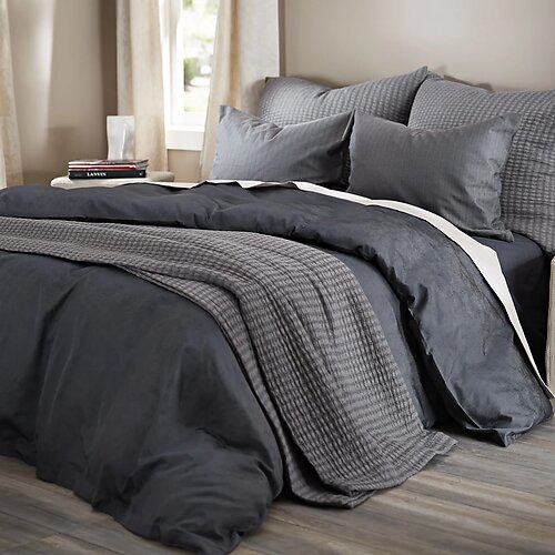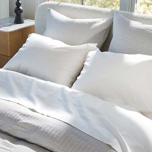 Crafted in Italy and Certified Oeko-Tex, Patina's fabric has a gently crinkled hand that gives it dimension without fuss. This is bedding that looks elevated but lives easily-machine washable, breathable, and surprisingly low-maintenance for a silk blend. The duvet covers and shams are tailored with button closures, while decorative pillows feature classic fabric tie closures, adding soft structure to the relaxed design. Whether styled alone or layered, each piece captures a balance of comfort and artistry.