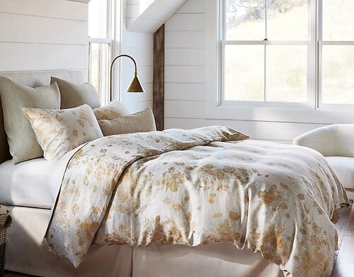 Let your bedroom bloom with the quiet sophistication of SDH Provence, a linen bedding collection inspired by old-world florals reimagined for the modern home. Crafted from 100% linen and woven in Italy, Provence brings an elevated charm through its 5-color yarn-dyed jacquard, where delicate botanical motifs dance across a richly textured surface. The intricate floral design is balanced with a soft, relaxed hand that makes this bedding feel as good as it looks. Whether you're after European romance or effortless elegance, Provence sets the perfect tone. First image shown with SDH's Koji Indigo 27x27" decorative pillow. 2nd Image show with Eton Dijon 12x24" decorative pillow, Camden Tan 27x27" decorative pillows and Canterbury Teak sheeting. These items are considered special order. Many items in this collection are made to order and usually will ship in 4-8 weeks.