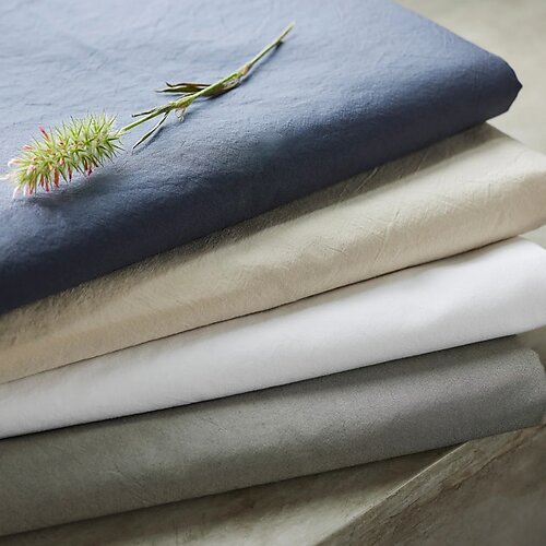 Designed for all-season livability, the lightweight weave of Tayla sheets and duvet covers is airy in the summer and cozy in the winter. The percale boutis weave offers a crisp and slightly textured finish, ideal for those who love the luxury of silk but live in the real world. From flat and fitted sheets to shams and decorative pillows, every piece is crafted with thoughtful detailing-button closures for secure fit and fabric ties for a charming, polished look.