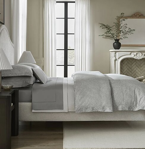 The cool, mineral-inspired tones of slate gray bedding create a foundation for endless design possibilities. Pair it with neutral decor for a sleek, minimalist look, or layer it with rich textures and bold accents for a more dramatic effect. With its elegant sheen and tactile depth, Sferra Bione Bedding is the ultimate choice for those seeking to elevate their interiors with effortless sophistication and natural charm.