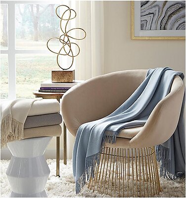 Harmonious Color Palette: With its flat basketweave pattern and fringe finish, the Sferra Bristol Throw exudes understated luxury. Available in Cream, Grey, Lake blue, and Taupe, each color option complements a range of interior decor styles, adding a touch of refinement to any room.