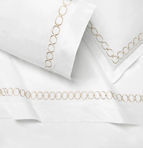 Modern Minimalism: Dive into the world of sleek sophistication with the Sferra Catena Bedding Collection. Inspired by the timeless allure of fine jewelry, Catena boasts a minimalist chain motif that exudes elegance and charm. Crafted on a canvas of pristine white percale, each piece is adorned with immaculately embroidered details, adding a touch of luxury to your sleep space.