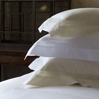 Airy and Fretwork Patterning: Giza 45 cotton is expertly stitched with an Italian-made lace-insert, highlighting its airy fretwork patterning. The delicate lace adds a touch of elegance and sophistication to your bedding ensemble, ensuring a luxurious and comfortable night's sleep.