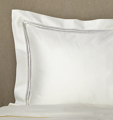 Elevate Your Sleep Experience: Indulge in the epitome of luxury with Sferra Diamante Lace Inset Sheets. Crafted with meticulous attention to detail, these sheets, duvet covers and pillow shams are adorned with a narrow satin ribbon delicately threaded through a macramé lace border, exuding understated elegance and sophistication.