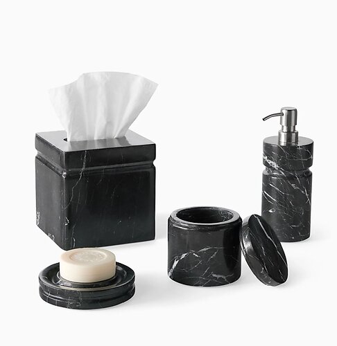 Immerse yourself in the unparalleled elegance of the Sferra Marquina bath collection. This is not just about owning bath accessories; it's about curating an experience, a mood, and an expression of personal style. Imagine the visual impact of the black marble, with its organic white veining, set against the backdrop of your bathroom. Each piece, from the soap dispenser to the toothbrush holder, is not just functional but a sculptural element that elevates the entire space. The Marquina collection invites you to transform your bathroom into a gallery of modern design and natural beauty, where every detail contributes to a sophisticated and cohesive look.