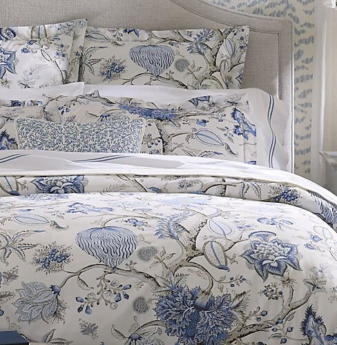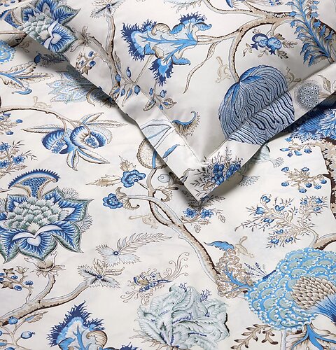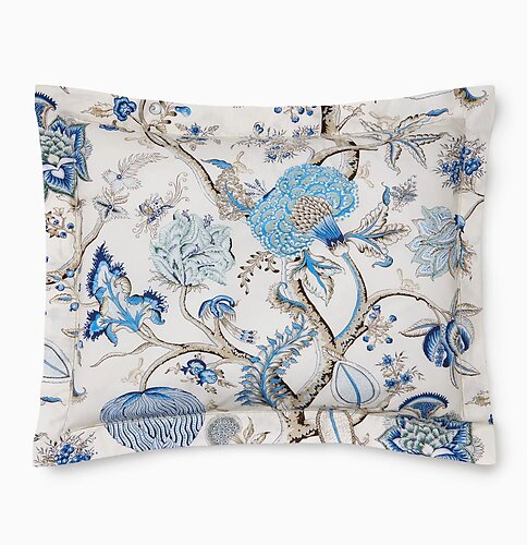 Turn your bedroom into a blooming sanctuary with the Sferra x Scalamandré Pondicherry Bedding Collection. Woven from 100% Italian long-staple cotton percale, this elegant set features a vibrant cascade of archival floral prints in rich sea blue and earthy taupe. Inspired by 18th-century Palampore textiles, Pondicherry weaves history, artistry, and storytelling into every thread. Each petal, leaf, and bloom is an ode to centuries-old craftsmanship and timeless design-now elevated for the modern home.