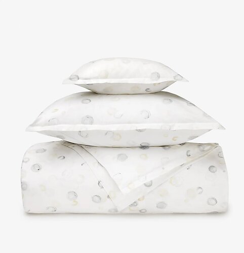 Step into a world of refined comfort with the Sferra Punti collection, a testament to the beauty of minimalist design and the luxury of Italian craftsmanship. Made from 100% long-staple cotton, this bedding ensemble, featuring quilts, duvet covers, sheets, and bed shams, is adorned with brushed-on shades of grey and taupe. The result is an all-over pattern that feels both modern and timeless, set against the collection's indulgently soft and breathable percale base. The Punti collection transforms your bedroom into a sanctuary of understated elegance and comfort.